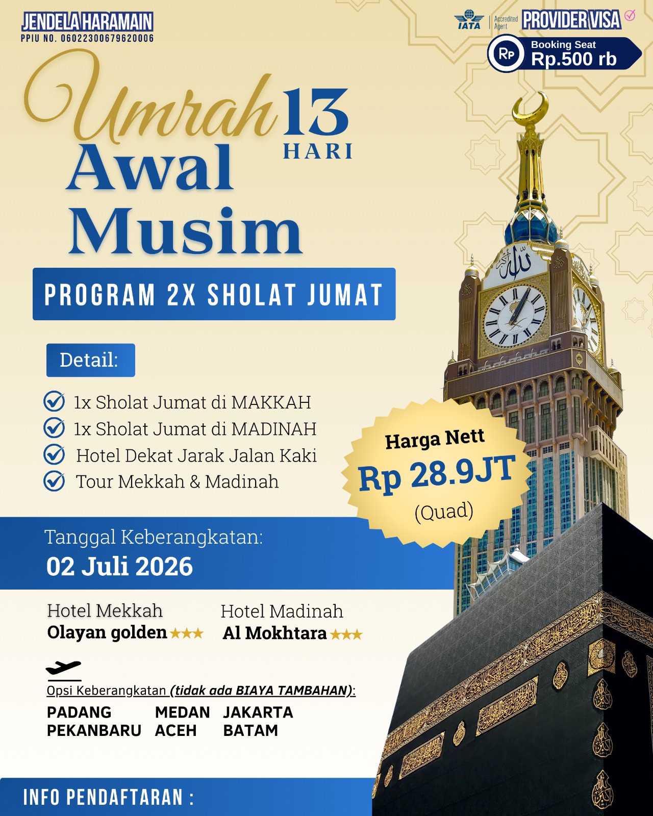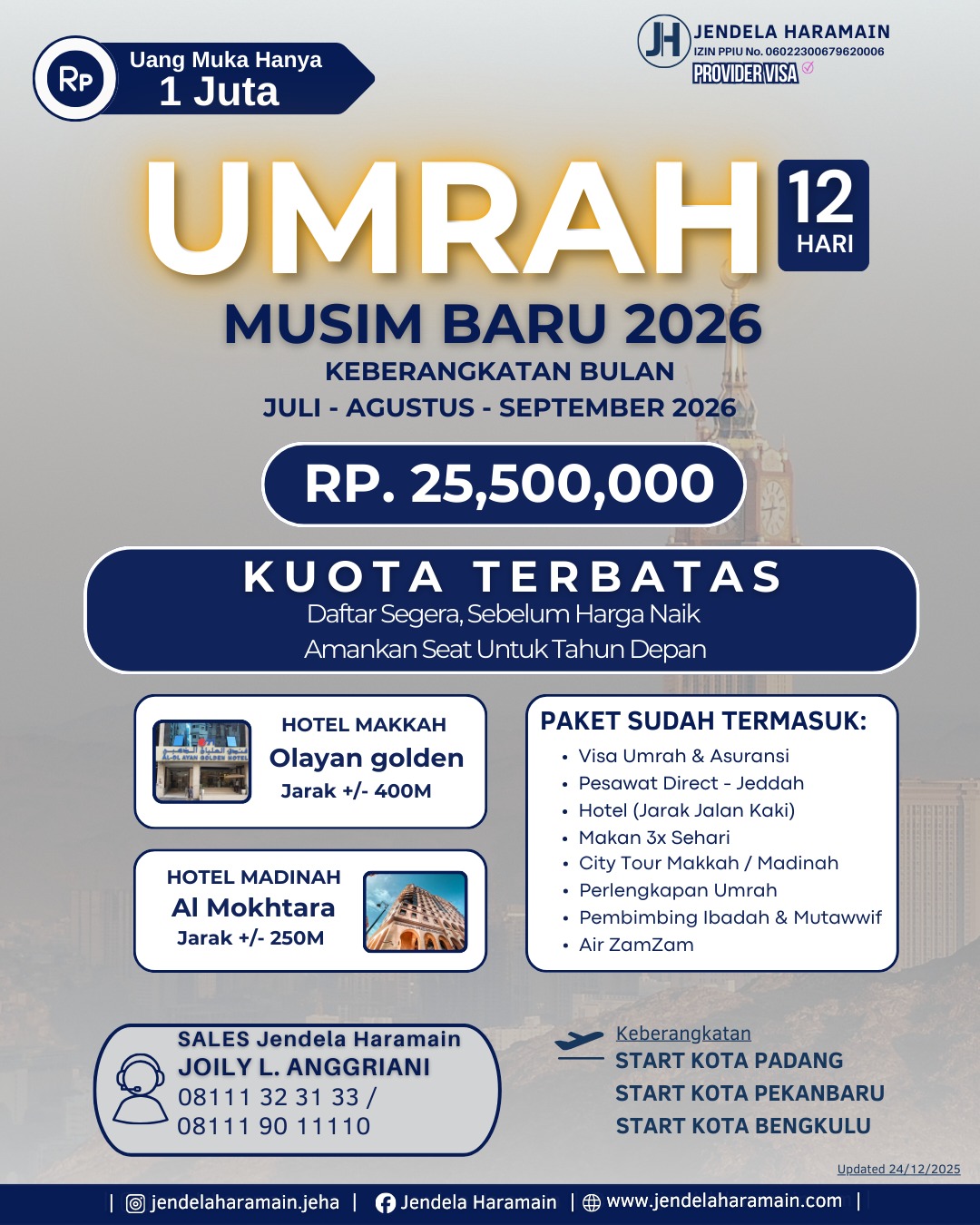 Ijin Resmi dari Penyelenggara Perjalanan Ibadah Umrah (PPIU) Nomor 06022300679620006 Tanggal 07-12-2024
